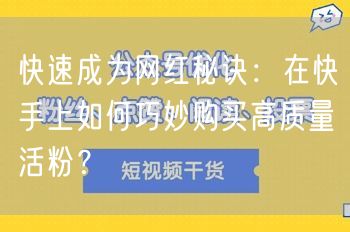 快速成为网红秘诀:在快手上如何巧妙购买高质量活粉?