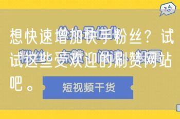 想快速增加快手粉丝?试试这些受欢迎的刷赞网站吧。