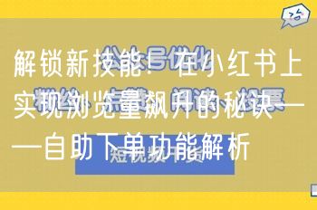 解锁新技能!在小红书上实现浏览量飙升的秘诀——自助下单功能解析